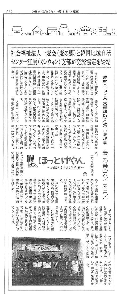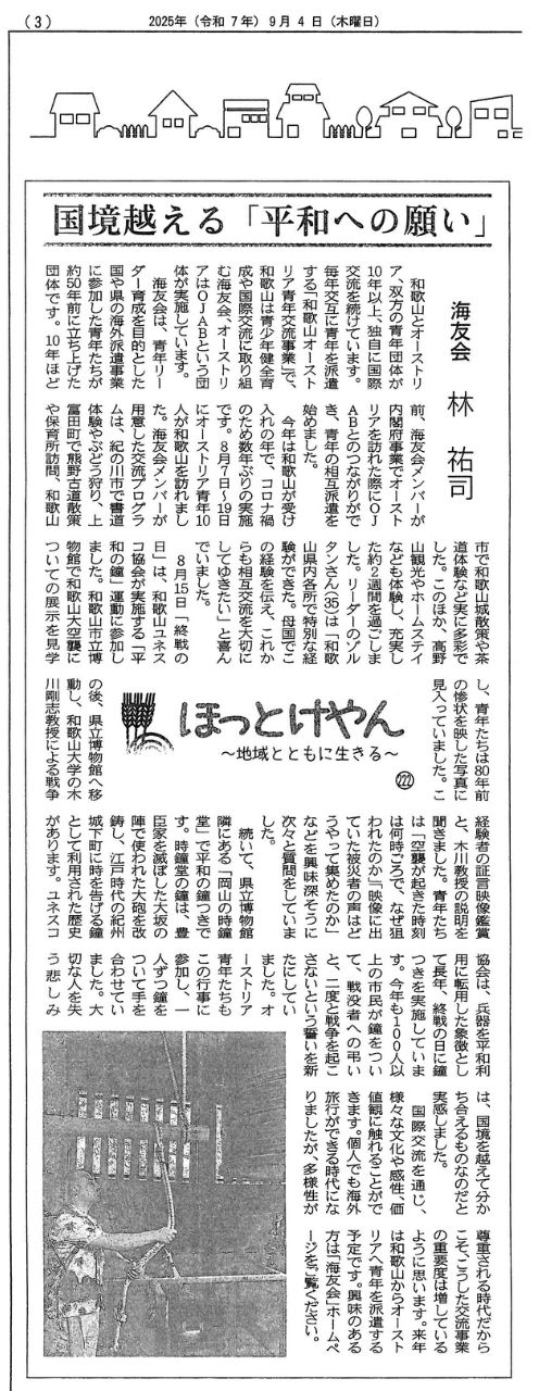 ”わかやま新報”毎月第一木曜日に「ほっとけやん」掲載中!!